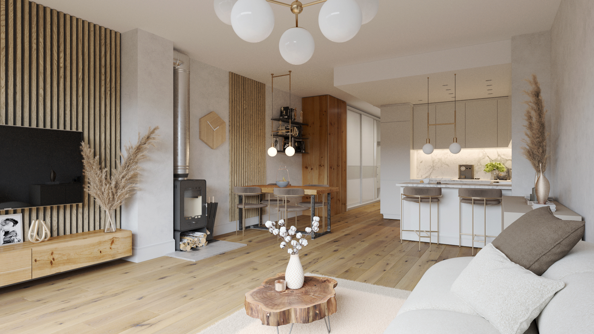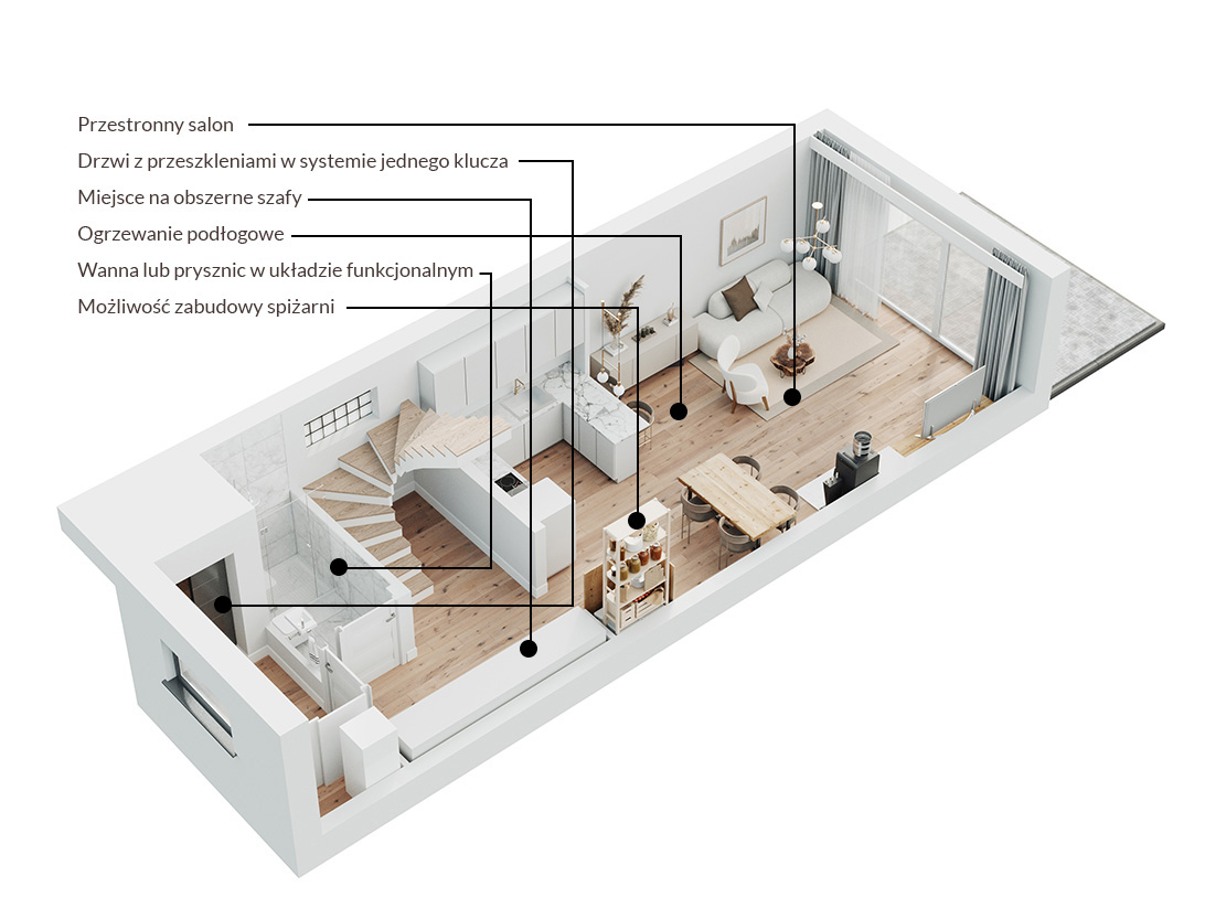 Przestronna strefa dzienna 33 m2