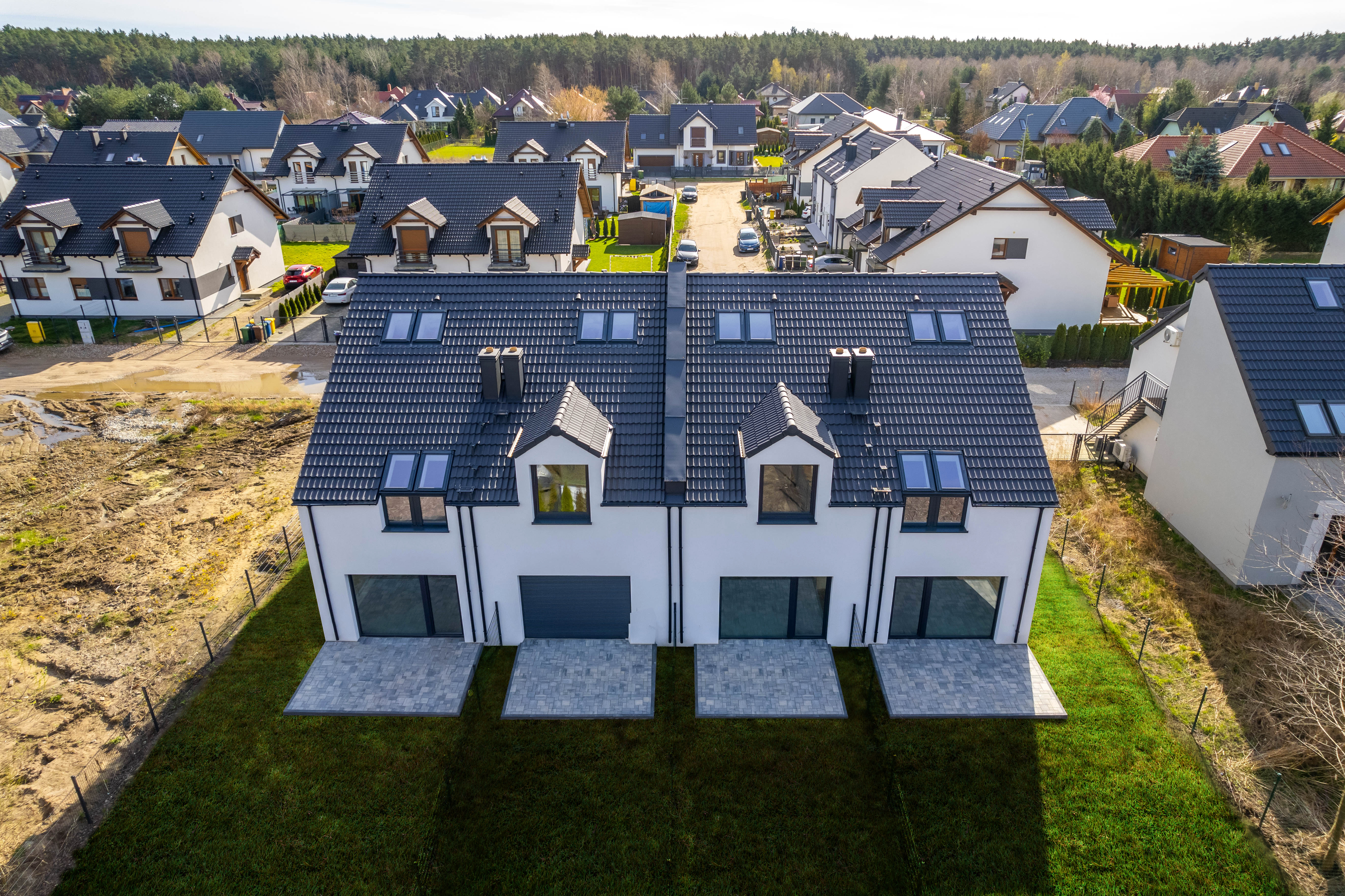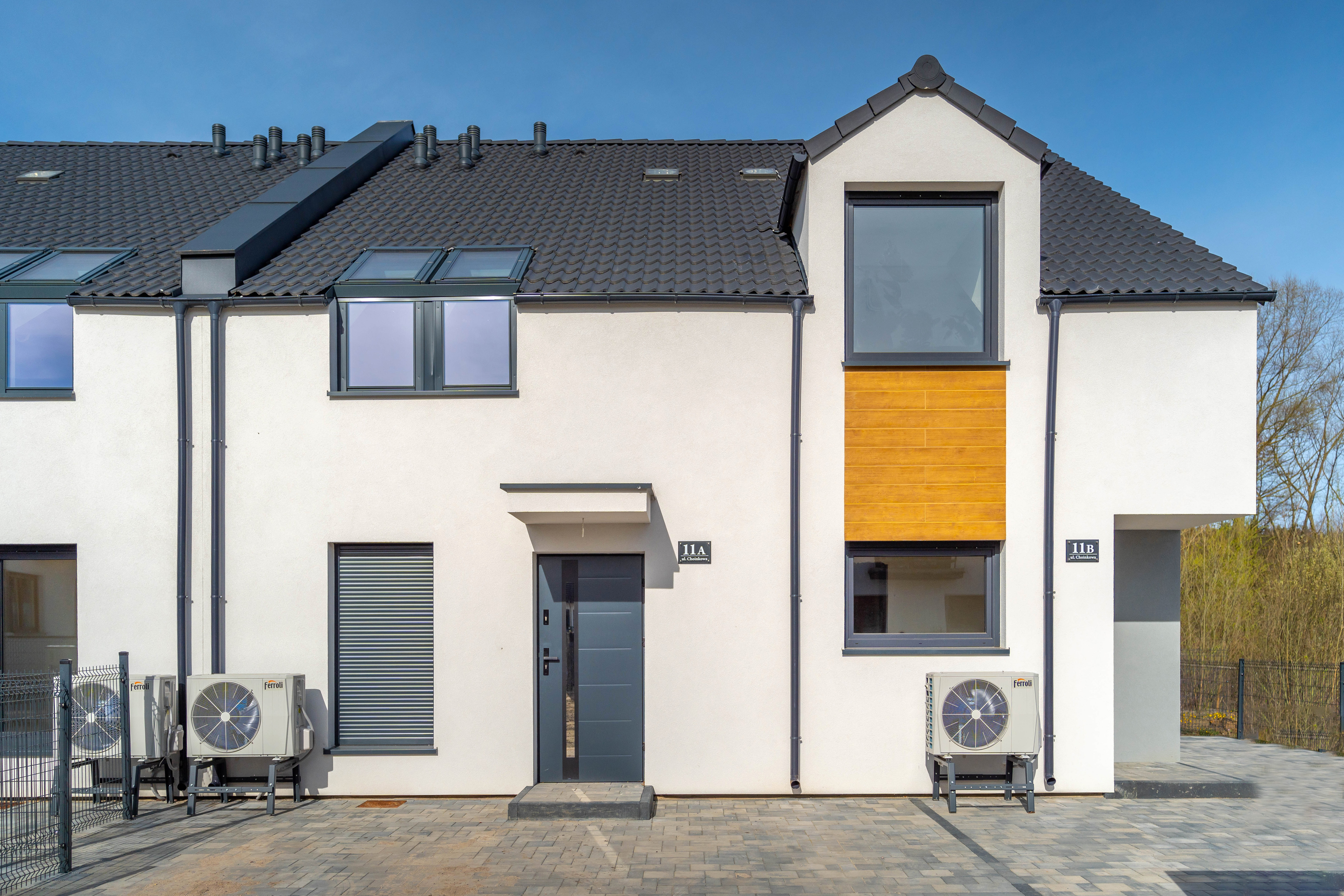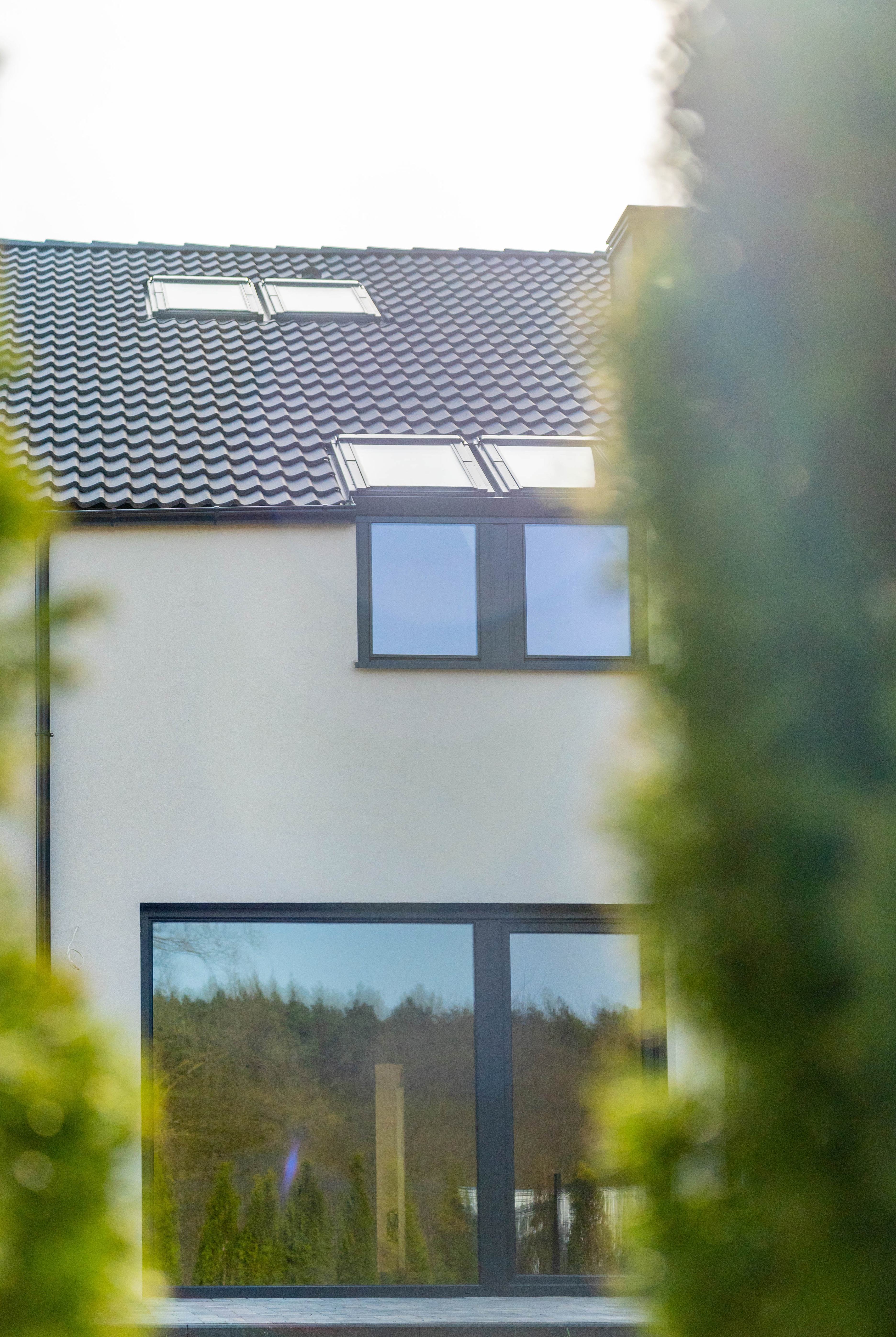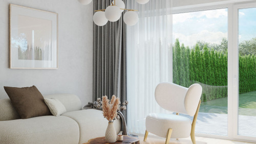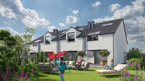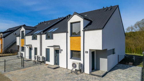 Duże przeszklenia okienne i modna elewacja nadają nowoczesny i atrakcyjny wygląd budynku. Zadbaliśmy również o ważne detale, takie jak ogrzewanie podłogowe we wszystkich pomieszczeniach z efektywnym źródłem ciepła, elektryczne rolety okienne, świetliki dachowe czy solidną dachówką zamiast blachy. Budujemy wyłącznie z materiałów wysokiej jakości.