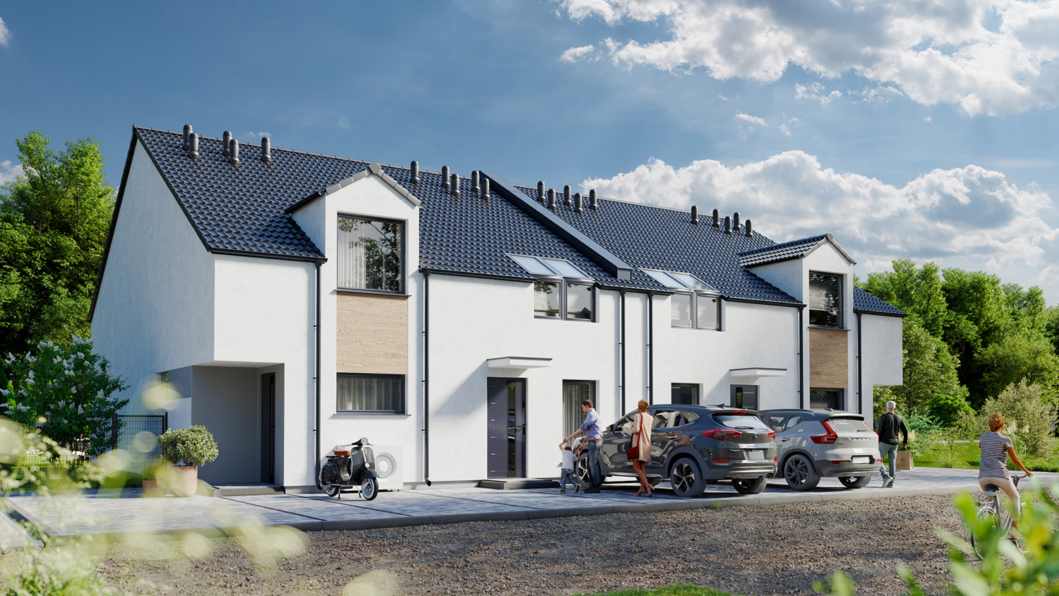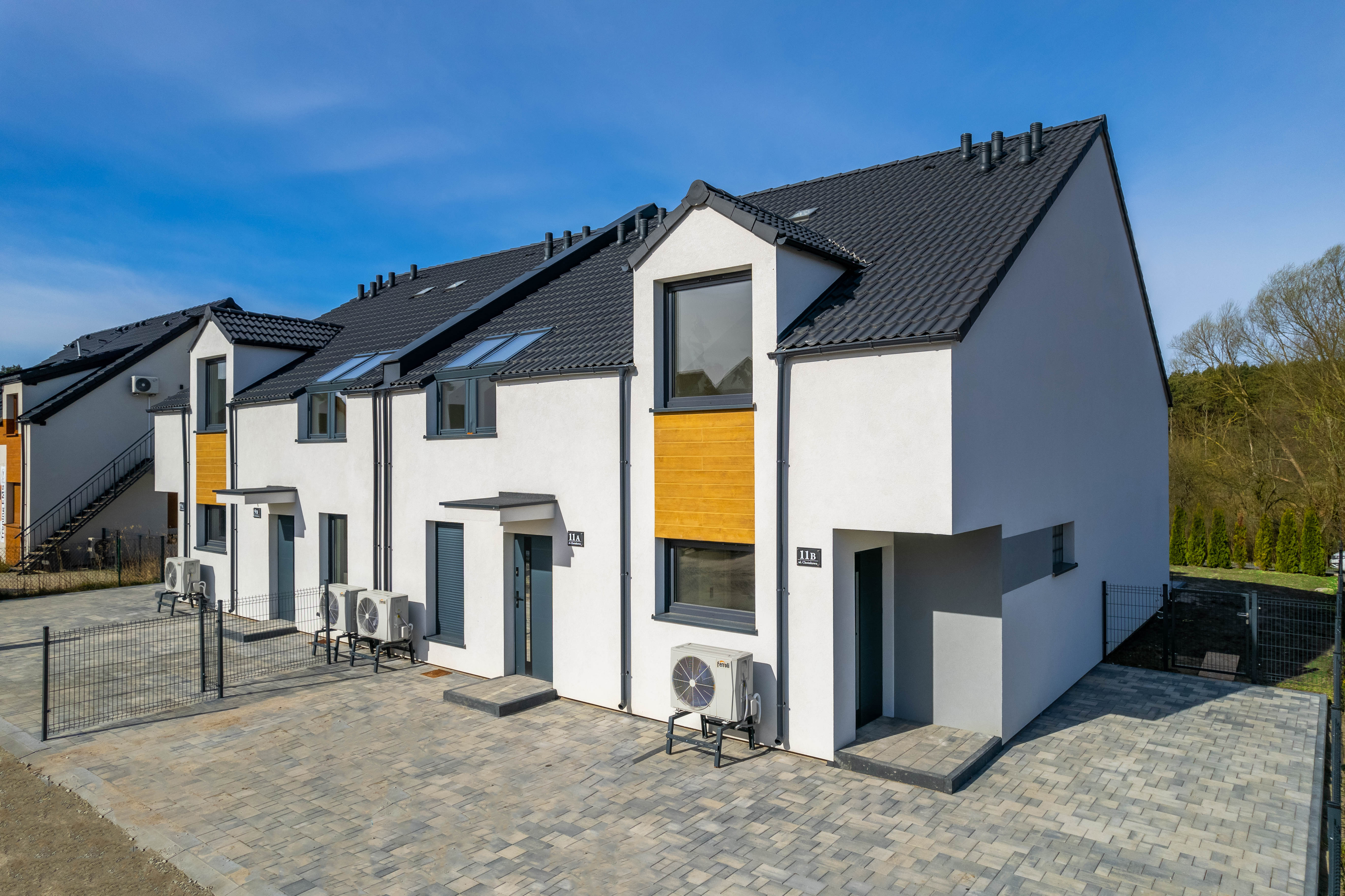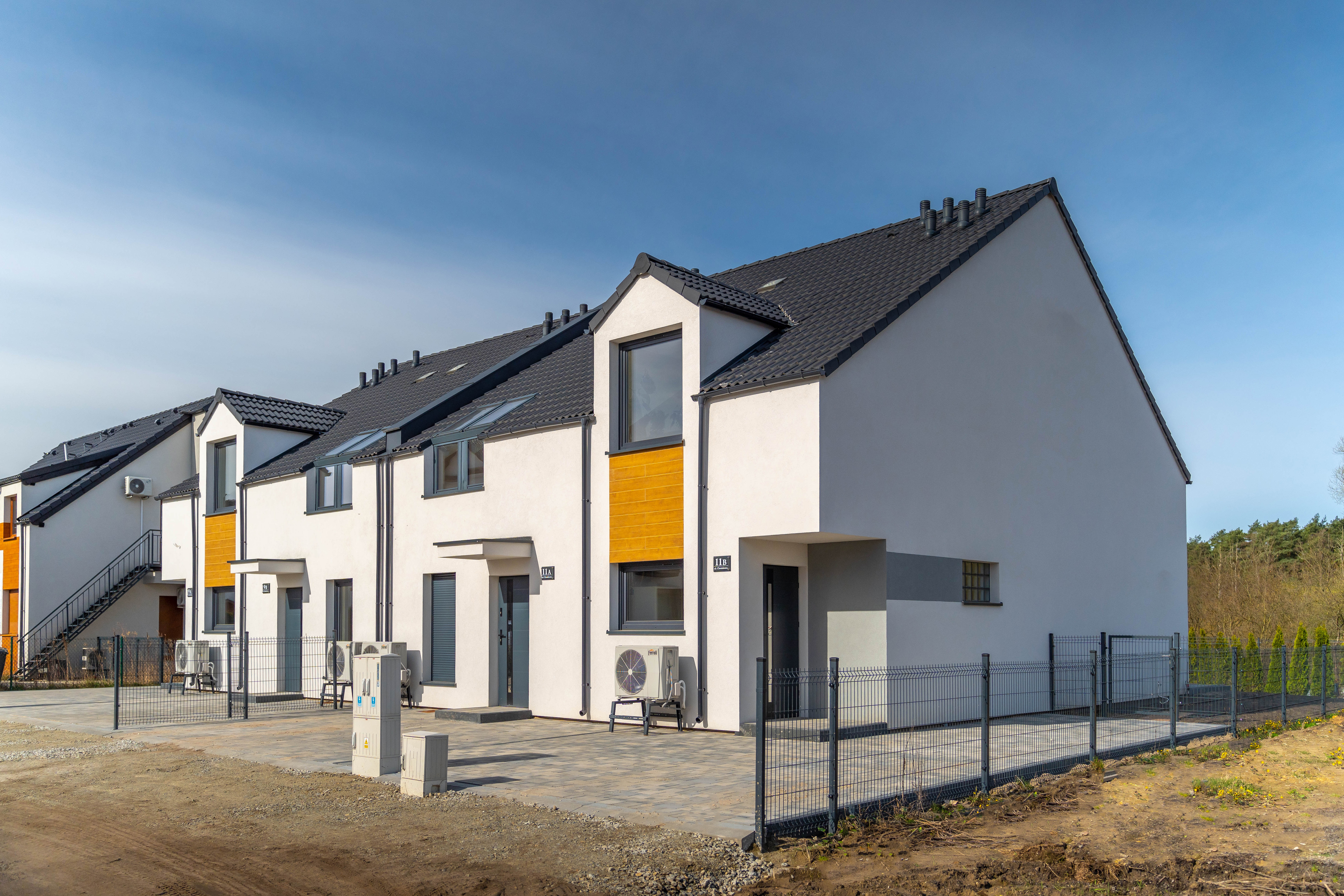 Duże przeszklenia okienne i modna elewacja nadają nowoczesny i atrakcyjny wygląd budynku. Zadbaliśmy również o ważne detale, takie jak ogrzewanie podłogowe we wszystkich pomieszczeniach z efektywnym źródłem ciepła, elektryczne rolety okienne, świetliki dachowe czy solidną dachówką zamiast blachy. Budujemy wyłącznie z materiałów wysokiej jakości.
